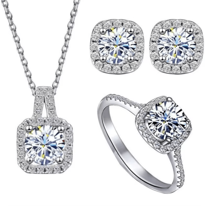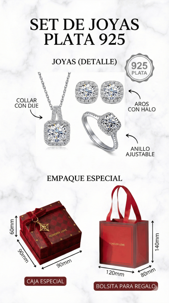 Set Forever Love - Regalo único con collar, aros y anillo ajustable en Plata 925
