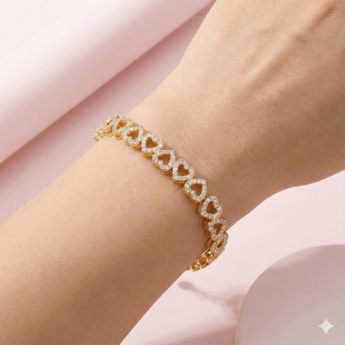 Eternity One™ Brazalete de corazones de circones, ajustable y de acero inoxidable - Podios