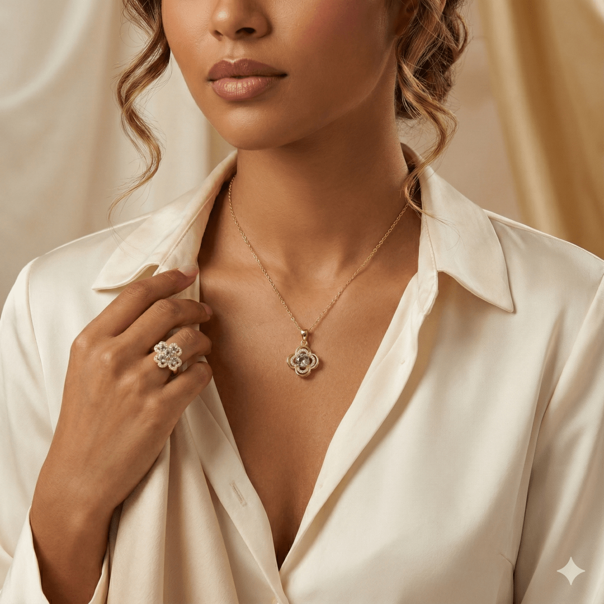 Incluye collar y anillo ajustable, en caja de rosa premium.