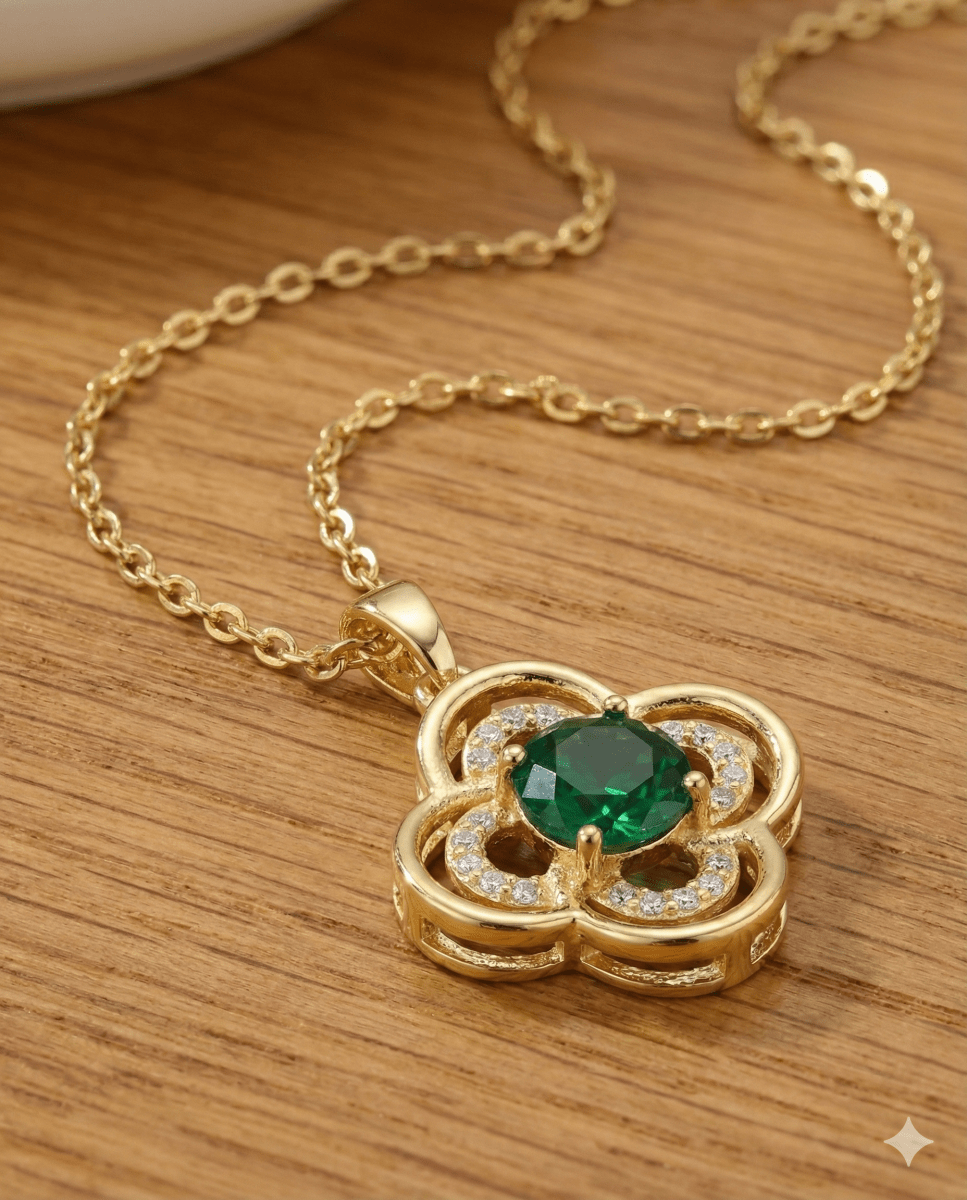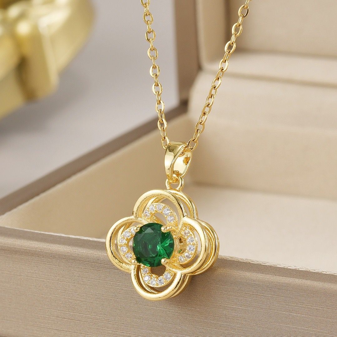 💚 Lumiere Emerald Clover - collar de trébol enchapado en oro 14k con circones y cristal color esmeralda